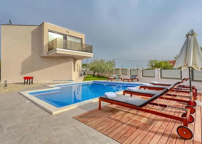 Family Friendly House With A Swimming Pool Debeljak, Zadar - 21383 villa features an equipped kitchen fitted with a fridge, an oven, and a cooktop. Zadar airport is 5 km away from the 3-bathroom villa.